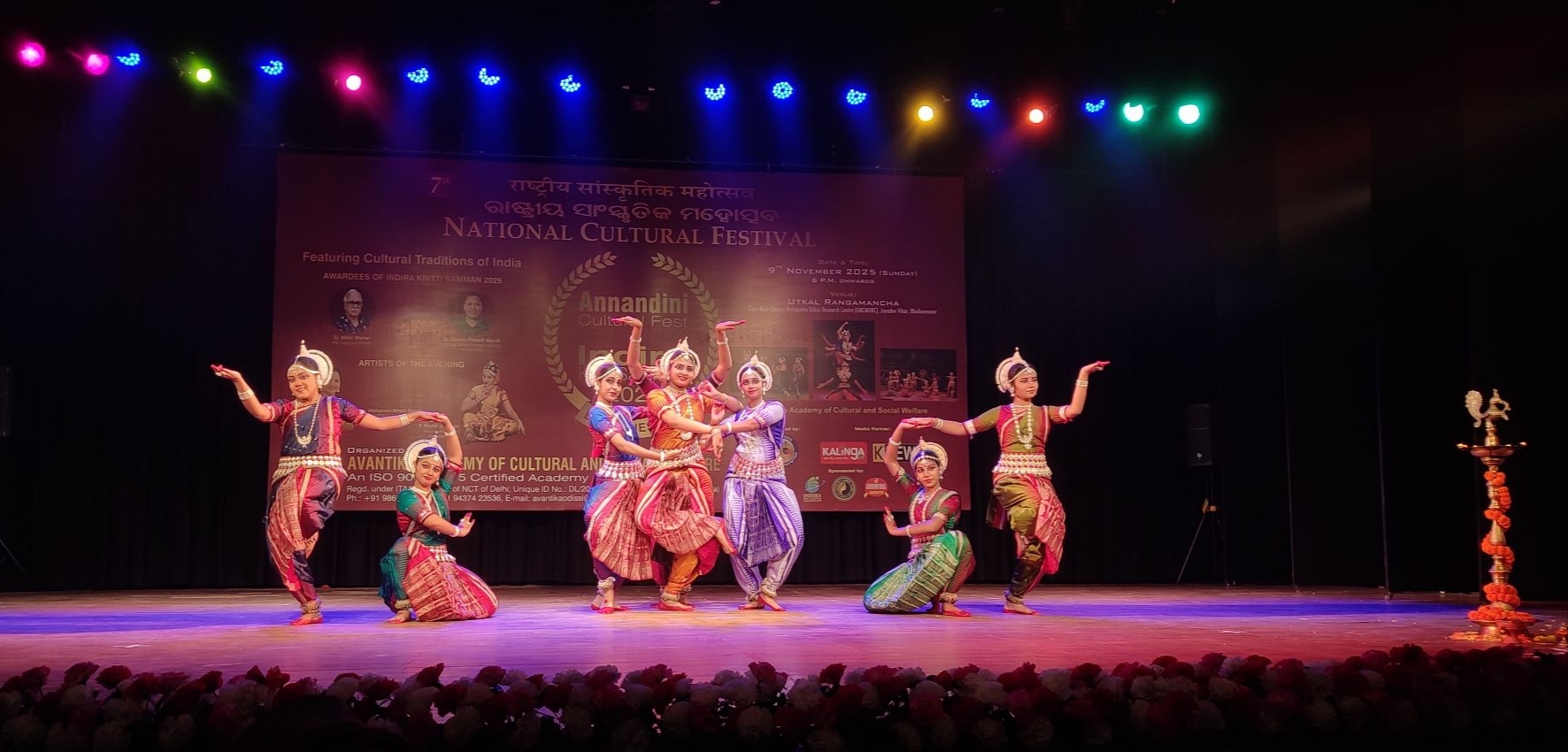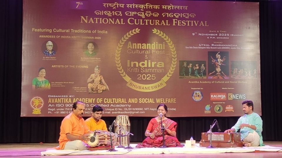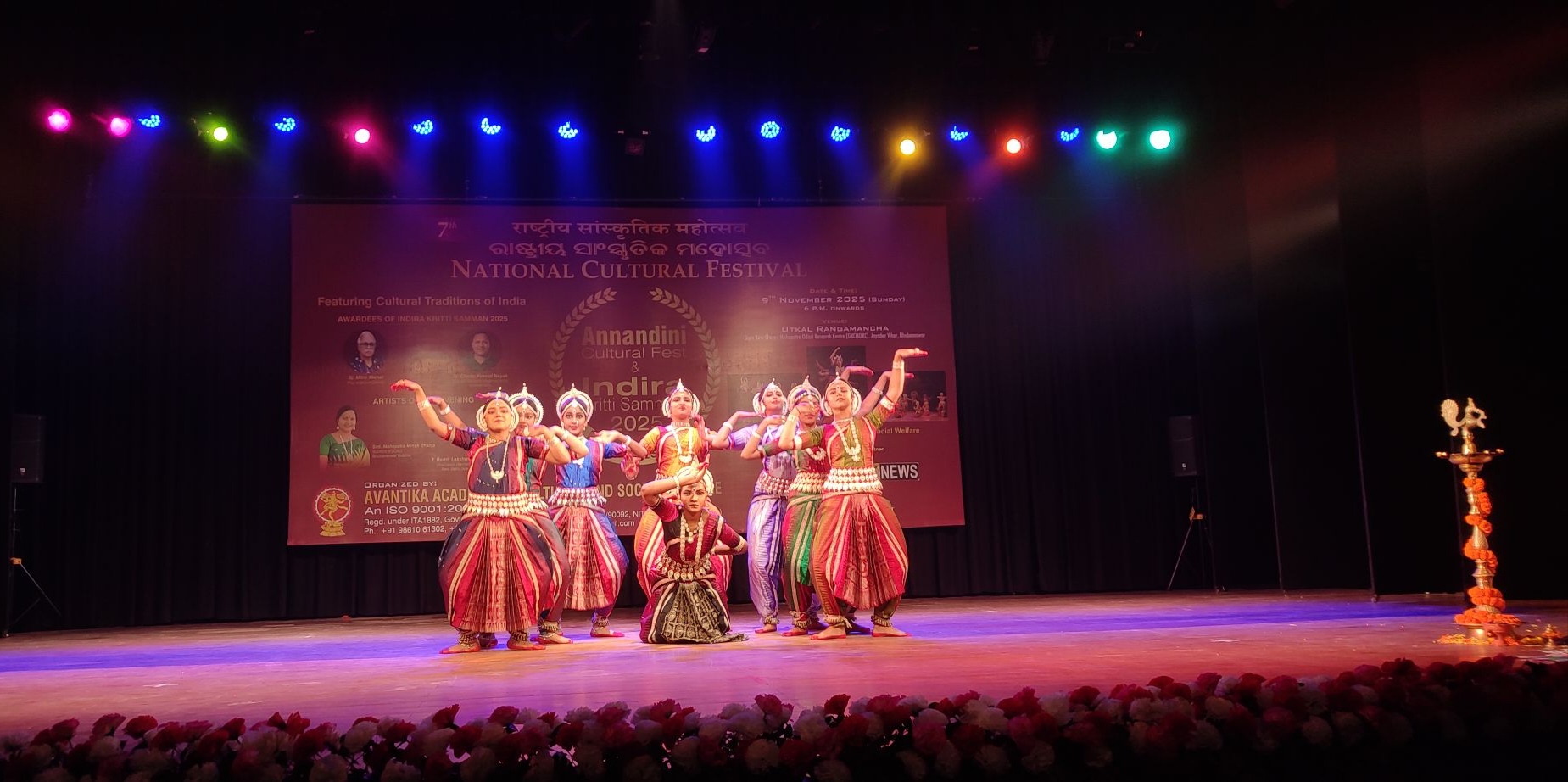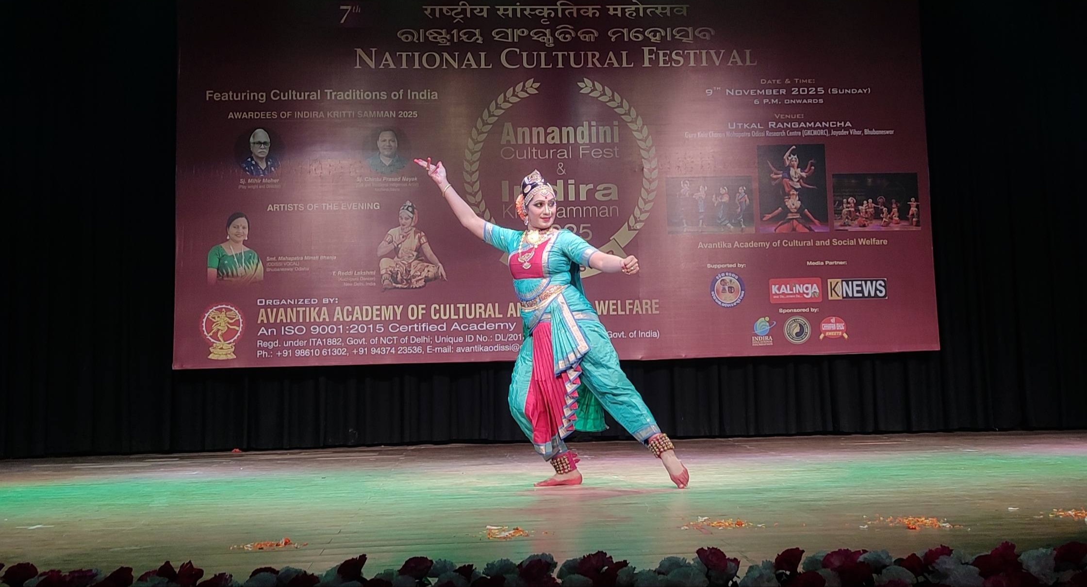 Bhubaneswar: The Utkal Rangamanch auditorium on the premises of Guru Kelucharan Mohapatra Odissi Research Centre, Bhubaneswar, came alive on Sunday evening as Avantika Academy of Cultural and Social Welfare hosted the seventh Annandini National Cultural Fest and Indira Kritti Samman 2025.