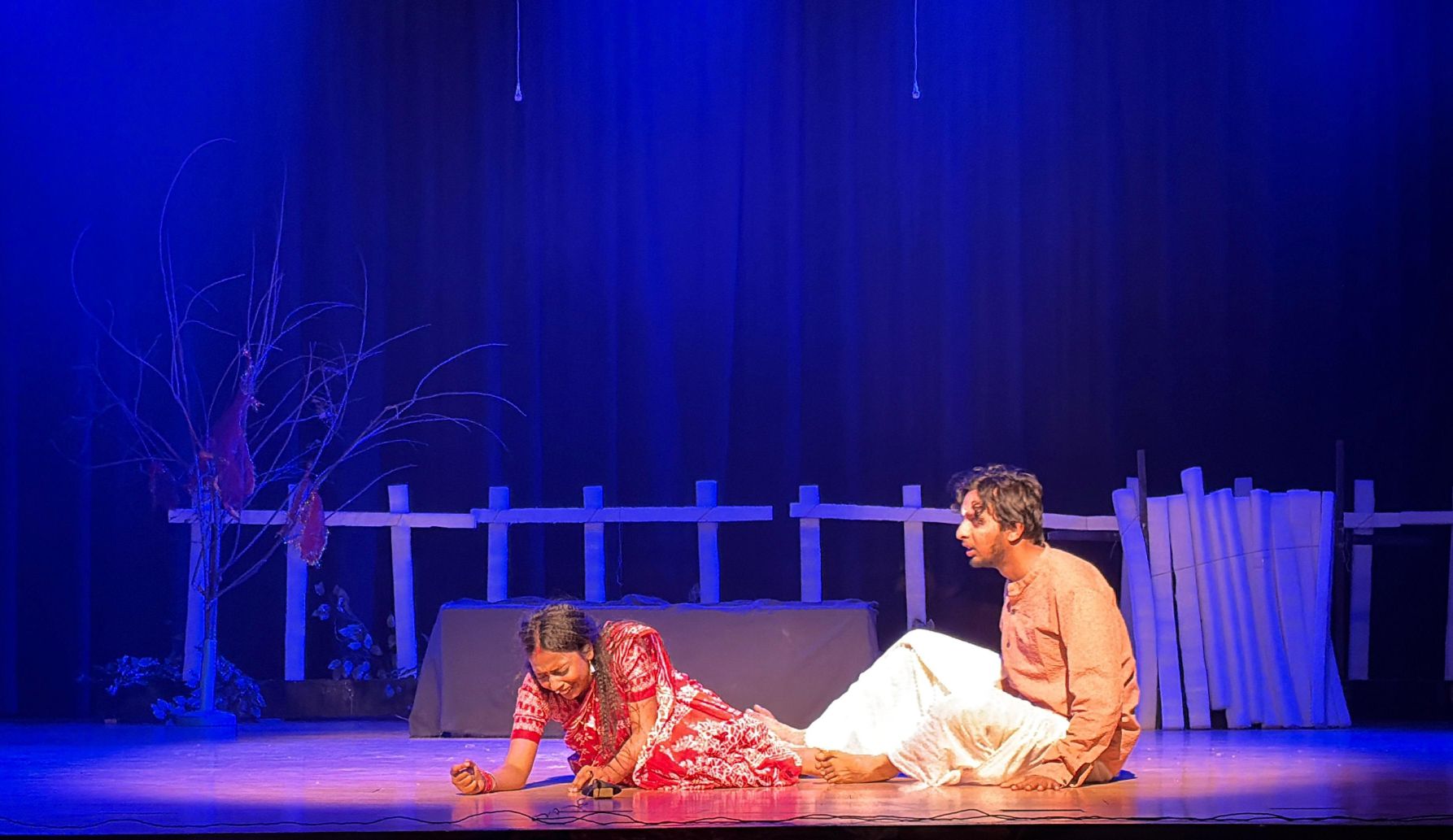 At the heart of the play is Sampa, a tragic yet compelling character whose life unfolds against the eerie backdrop of a cremation ground. Forced into ancestral labor from childhood, Sampa’s emotional attachment to dead children is portrayed with disturbing sensitivity. Her innocence, trauma, and longing for affection form the emotional core of the narrative.