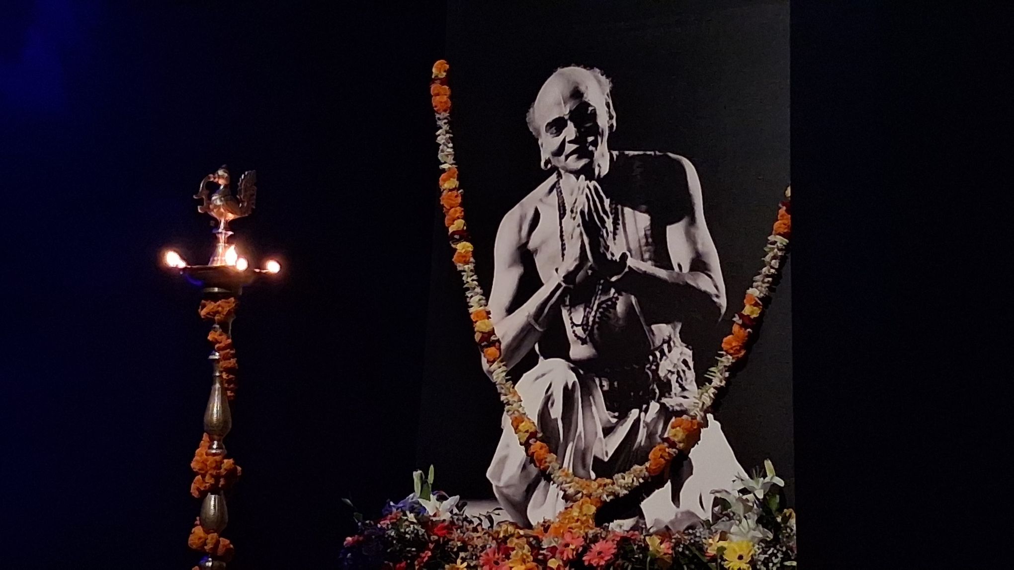 The venue, Rabindra Mandap, wore a festive look right from the entrances. While the entire premises was bathed in colourful light and there was an aesthetically-curated photo exhibition showcasing 127 rare photographs of Guruji. A striking sand sculpture of Guruji became a major draw for visitors, while informative displays on his life and times were thoughtfully placed throughout the venue.