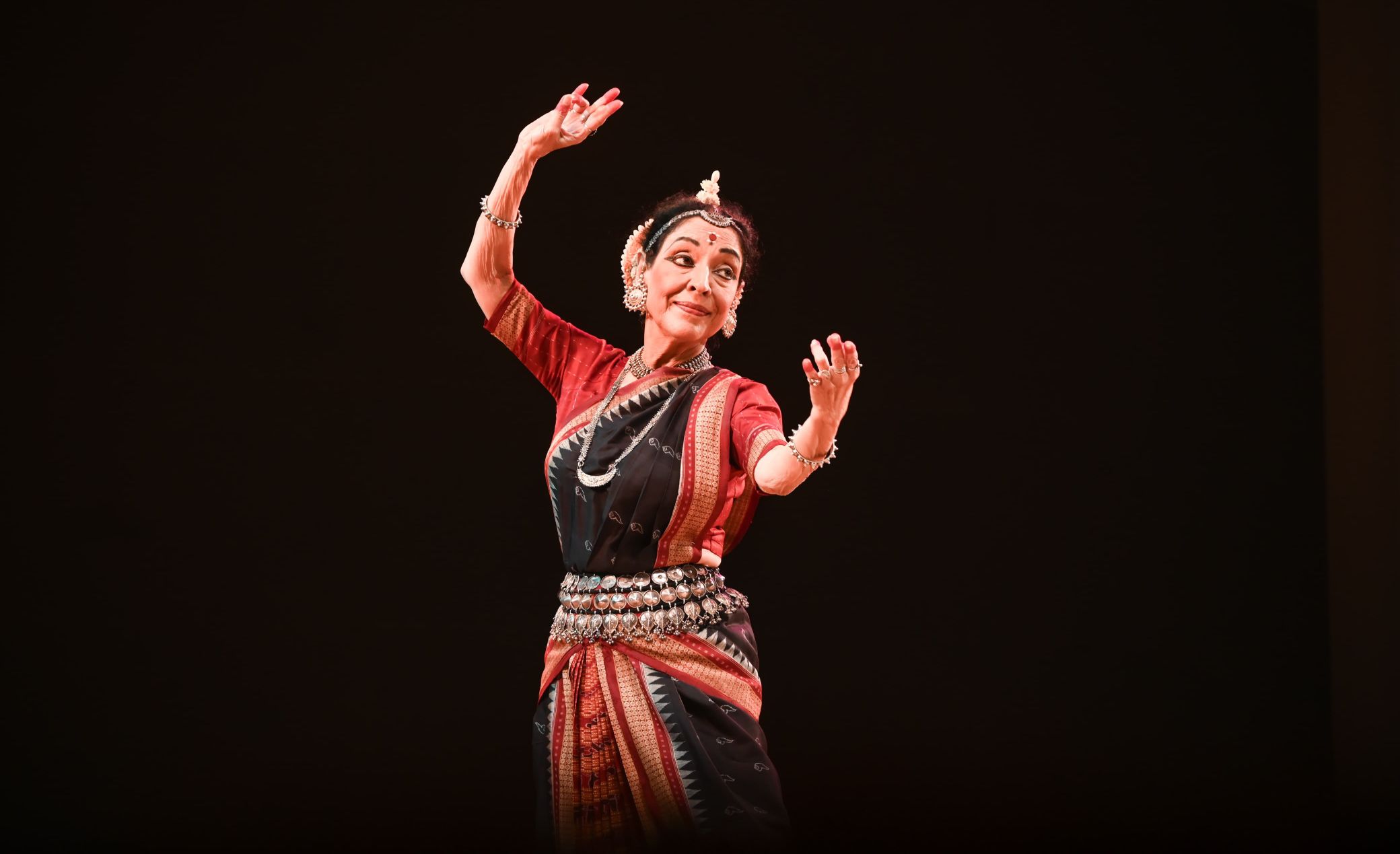 After this evocative beginning, Guru Smt. Kumkum Mohanty, one of Guruji’s earliest disciples, performed the Odia abhinaya ‘He Banagiri He Latagiri’, written by Biswanath Khuntia, the writer of the Bichitra Ramayan, choreographed by Guru Kelucharan Mohapatra and music by Pandit Bhubaneswar Mishra.