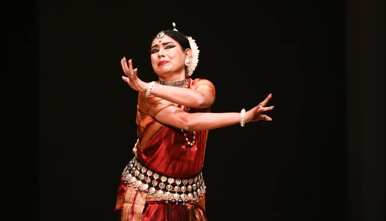 The stage then belonged to another distinguished disciple of Guruji Smt. Madhavi Mudgal, who had recently conducted a three-day workshop of a timeless Odia abhinaya of Guruji organised by Srjan. Her rendition, ‘Shankarabharana Pallavi’, set to Raga Shankarabharana and Tala Ektali, choreographed by Guruji with music by his best companion Pandit Bhubaneswar Mishra, was a masterclass in rhythmic sophistication, sculptural elegance, and commanding stage presence. Conceived in 1975 and recorded in 1979, the piece stood as a glowing testament to Guruji’s choreographic genius.