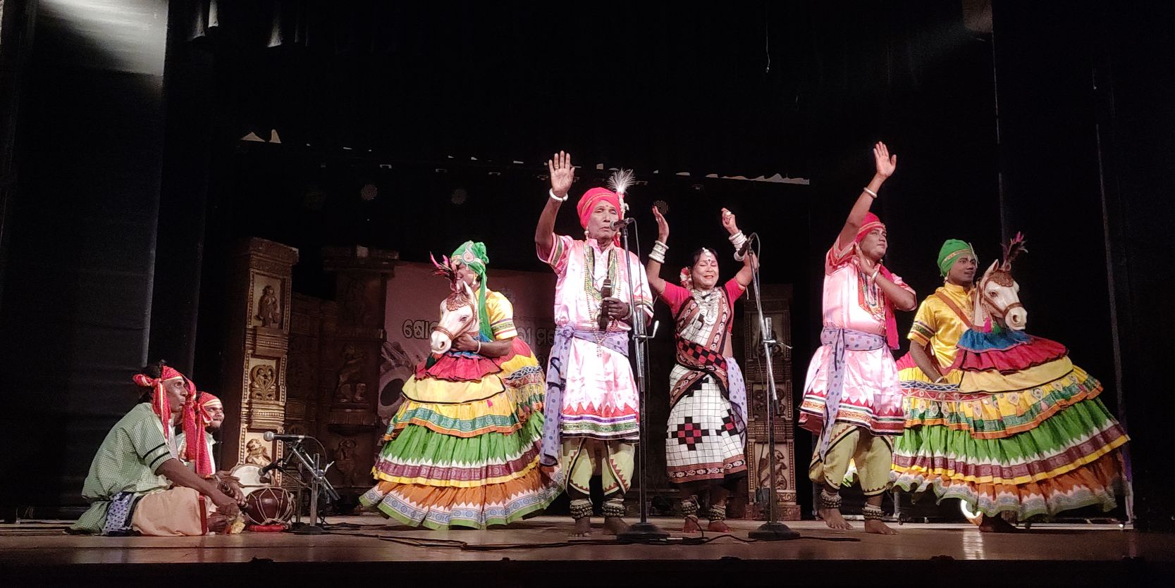 The stage then came alive with the spirited ‘Ghoda Nacha’, led by Padma Shri recipient Utsab Charan Das and his troupe-Tilattoma Mohanty, Gopinath Behera, Ashutosh Dalei and Tipuna Muduli. The accompanists who lent them a good support were Purna Nanda Samal (Jodi Mahuri), Sunil Kumar Bhoi (Dhol) and Prahallad Samal (Jodi Nagara). The dramatic exchange between Chadheia (Guru Utsab Charan Das) and Chadheiani (Tilattoma Mohanty) left the art lovers spellbound.